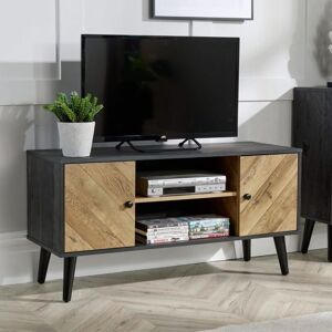 This TV unit will take pride of place in your living room and offer a stunning central focus to place your television on. With its spacious flat surface, your TV will sit comfortably. Available in Oak-effect and Grey, the unit also offers a generous amount of storage space, with two cupboards to keep any entertainment items or technology pieces safe and out of the way. There are also two open shelves which will also house any belongings. The unit features a weathered oak look which will suit any style of home. The frame and legs are black in colour, giving a sleek look. The cupboard handles boast the same black metal as the legs for cohesion. Home Source TV Unit Media Stand Storage Cabinet 2 Door Cupboard Shelf Storage in Natural