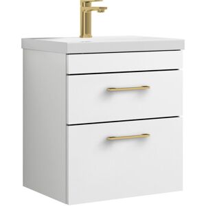 Rio 2 Drawer Wall Hung Vanity Basin Unit - 500mm - Gloss Grey with Brushed Brass D-shaped handles (Tap Not Included) Bring modern elegance and everyday practicality into your bathroom with the Rio 2 Drawer Wall Hung Vanity Basin Unit - 500mm - Gloss Grey with Brushed Brass D-shaped handles. Perfect for cloakrooms, en-suites, and compact bathrooms, this unit offers smart storage and a slim-edge ceramic basin that saves space while looking stylish. Its gloss finish enhances the room, while the soft-close drawer ensures smooth, quiet everyday use. Balterley offers coordinated bathroom furniture and brassware to help you create a seamless, designer-inspired bathroom. Combining modern style, functional storage, and long-lasting quality, this vanity unit is designed to elevate your space for years to come. Product Highlights: Wall Hung Design: Maximises floor space and makes cleaning easier, giving your bathroom a modern, open feel. Gloss Finish: Pristine gloss grey brightens your bathroom,