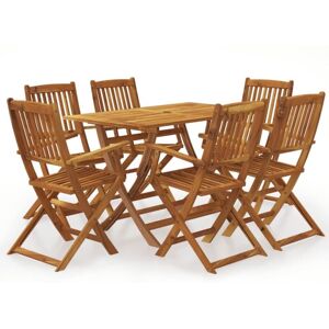 This stylish and contemporary dining set consists of 1 rectangular folding table and 6 folding armchairs and will add a luxurious touch to any dinner. Our wooden furniture set will be the focal point of your garden, terrace or patio. The dining set is made of high-quality solid acacia wood, a tropical hardwood, which is weather resistant and durable for years of use. The oil-finished surface is also easy to clean with a damp cloth. The table and the chairs can be folded to save space when not in use. Delivery includes 1 rectangular table and 6 folding armchairs. Colour: Brown Material: Solid acacia wood (oil-finished) Table dimensions: 120 x 70 x 74 cm (L x W x H) Chair dimensions: 51 x 56 x 91 cm (W x D x H) Seat width: 44 cm Seat depth: 39 cm Seat height from the ground: 44 cm Armrest height from the ground: 64 cm Easy to assemble Delivery includes: 1 x rectangular folding table, 6 x folding armchair SKU: 43379 EU responsible party Haba Trading B.V. Mary Kingsleystraat 1 5928SK