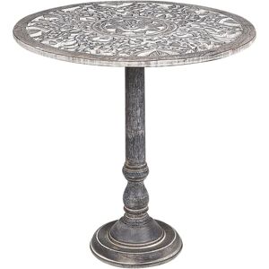 Handmade Pedestal Round Side Table. Handmade, unique and one of a kind - this side table has it all. The piece, made out of mango wood and MDF, boasts high durability and doesn't require daily maintenance to last for many years. It's placed on a lacquered pedestal, which makes it very stable, so you can place drinks, food or favourite decorations on it without worrying about them falling down. The painted top of the table features attention drawing floral carvings, which surely will draw attention of your house guests. Details: Product Type: Side Table Style: Traditional General Color: Grey, Gold Material Type: Wood Main Material: Mango Wood Legs material: Wood Top Material: Wood Shape: Round Finish: Lacquered Storage: No Dimensions: Width: 61 cm Length: 61 cm Height: 62 cm Weight: 5 kg Weight Capacity: 12 kg Offer Includes: 1 x Side Table Key Features: Eye-Catching Accent Piece, Makes Your Interior Stylish, Exceptionally Low-Maintenance, Unique Handmade Piece, High-Quality Materials