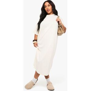 Relaxed oversize fit with a flattering midi length Soft knitted fabric for all-day comfort Classic crew neckline with short sleeves Versatile curved hemline for added style Inclusive plus sizing designed to complement your curves This effortlessly chic T-shirt dress from Boohoo is the ultimate wardrobe staple for the fashion-forward woman. The relaxed silhouette offers both comfort and style, making it perfect for casual daytime outings. Style with trainers and a crossbody bag as shown for a laid-back weekend look, or transform your ensemble with chunky boots and a leather jacket for an edgier vibe. The versatile design works brilliantly for family gatherings or coffee dates with friends. For cooler days, layer with an oversized cardigan or denim jacket and accessorise with statement jewellery to showcase your personal style. The simple yet contemporary design allows for endless styling possibilities, ensuring this dress becomes a go-to piece in your casual collection. Pair with ankle boots and a wide-brimmed hat for a touch of boho flair that's quintessentially British.