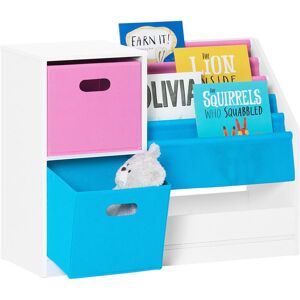 Modern design children storage shelf will blend perfectly with any decor. It will keep your room nicely organized.Children’s sling bookcase: The ideal way to store and display their favourite books ready for reading and sharing.5 tiers fabric shelves are flexible for books of varying size and thickness. The open compartment underneath the fabric shelves provides additional storage space for you.On the left side, there are 2 compartments with 2 fabric boxes, offering ample storage space for the toys. 2 fabric boxes can be pulled out completely as a great storage solution.The top is ideal for storing something you might need in reach, or small decorations you want to display.Suitable for children ages 3 and up, it can help your kids develop a good habit of organizing. Isabelle & Max Colour: White/Grey