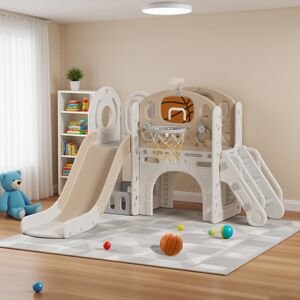 Kidkid places your child's safety at the forefront of everything we do. Our toddler slide is made from premium, non-toxic and recyclable HDPE material, and boasts a smooth, rounded design free from sharp edges and corners, creating a cozy and secure play area where your child can explore and learn. This versatile playset includes a stair, slide, built-in storage, a lively ring tossing game, a mini basketball hoop, a spacious deck, a telescope, and a crawling arch at the base, offering endless opportunities for your child to play and grow. Living and Home