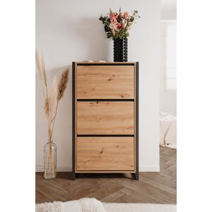 Shoe tipper with 3 flaps with 2 shelves each Finish: Artisan oak / Anthracite Dimensions: Approx. 70cm W x 125cm H x 25cm D. ABS edge Melamine coating Handleless with bevelled edge Body and front material thickness: 16mm Frame 30 x 30mm MDF profile Made in Europe Borough Wharf