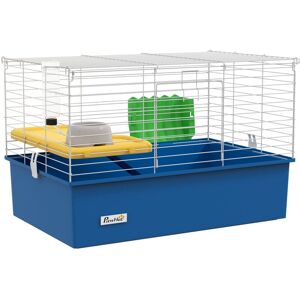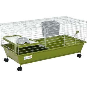 Give your small pet their own place to chill the day away with this cage from PawHut. It's made with a 40x89cm living area, protected by metal wire casing, keeping them safely inside and allowing the air to flow through. Inside features a small platform with a food bowl, a water bottle, a ramp and a hay feeder, giving them everything they need to stay happy, hydrated and fed. With a large front door and top door for easy access, it's finished with a deep base, which collects dirt and debris, and four wheels to move around easily. Perfect for Rats,Chinchillas and more. Specifications: ● Colour: Black ● Material: Steel, PP and nylon ● Dimensions: 43H x 89L x 44Wcm. Front door: 17H x 25Wcm. Top door: 54.5L x 25Wcm. Plastic tray: 14H x 86L x 42Wcm. Platform: 45L x 25Wcm. Ramp: 40L x 13Wcm. Food dish: 4.5H x 13L x 13Wcm. Water bottle: 26H x Φ6cm - Item Label: D51-154BK Features: • Four wheels for easy movement, can be locked • Ideal for small rabbit, chinchilla, guinea pig and other
