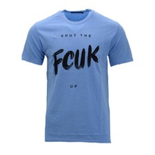 French Connection Mens Blue Cotton Blend Stretch Open Collar Short Sleeve Polo Top - Size X-Large