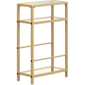Discover the chic versatility of the HOMCOM three-tier shelf, featuring sleek tempered glass levels optimal for any snug space. Its 18 cm width makes it a great slim end table or living room side table. The quirky misaligned bottom crossbars add a touch of fun while keeping your books tidy. All wrapped up in a stylish powder-coated steel frame!Features:Three-tier shelf with tempered glass enhances item visibility18 cm wide for narrow spacesMisaligned bottom crossbars accommodate various item heightsPowder-coated steel frame ensures durabilityA versatile piece, great as end table, sofa table, or small coffee tablePP foot pads protect floors from scratchesMaximum load 15kg, easy to assemble