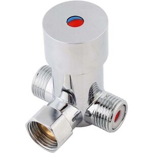 Thickened brass valve ensures stable performance and long service life Easy to control the mixing ratio of hot and cold water to adjust the water temperature < p>One end is cold water inlet, one end is hot water inlet and middle mixed water outlet, easy to install and use Standard G1/2 thread fits many domestic or commercial pipes Built-in check valves effectively prevent backflow of cold and hot water