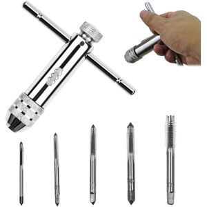 Specification: Material: alloy steel Silver Ratchet: 20 x 85.4mm / 0.79 x 3.36inch Faucet Shaft: 7 x 100mm / 0.28 x 3.94inch Manual Tap: M3 M4 M5 M6 M8 Quantity: 7pcs p> Package Included:< /p> 1 x One Hand Ratchet Wrench 5 Taps Package includes: one-piece adjustable ratchet + 5 taps (1pc M3; 1pc M4; 1pc M5; 1pc M6; 1pc M8). Universal size, precise size, no worry about mismatched screws. High quality material: T-handle tap wrench is made of high quality alloy steel with chrome-plated surface, high hardness, rust and corrosion resistance, no deformation and wear resistance. Ergonomic design: Designed for use with screw taps, and can also be used with left and right swivel taps, reamers, screw extractors and other square handle tools. Knurled nuts for tightening. Easy to use: T-shaped ratchet with knob to adjust the direction of rotation. The handle surface features a non-slip pattern for easy gripping and pressing. VERSATILE USE: Our tap wrench with drill and tap is ideal for automotive
