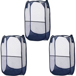 About this item SET OF 3 LAUNDRY BASKETS: Our set includes 3 blue mesh baskets. Each collapsible laundry basket measures 63 x 32 x 32 and has a flexible and lightweight stainless steel frame. The mesh is made of nylon. They have a large opening at the top for easy access, which is 32 x 32 cm. There is a mesh pocket on the side that measures 32.5 x 30 cm. Each dirty laundry basket has two strong handles that allow it to easily carry 5 kg of laundry. SPACE-SAVING POP-UP SYSTEM: Open the fabric laundry basket and it unfolds, ready to use. To fold it, twist the flexible frames to store it flat. When folded, the laundry basket measures 19 x 19 cm. Our laundry basket set is perfect for small spaces, but can still hold a lot of clothes when unfolded. They can be used in a dorm room, apartment, or camper. BREATHABLE MESH: The walls of each laundry basket are made of fine mesh. It is lightweight and allows air to circulate. Your clothes stay fresh and odors are limited. The mesh helps