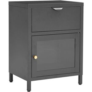 This bedside cabinet exudes a touch of modern charm and makes an excellent addition to your current bedroom decor. The bedside table is made of steel and tempered glass, making it durable and easy to clean. The cabinet has 1 drawer, which provides ample storage space to keep your books and small essential items organised and within reach. Drawer with 3 sections ballbearing runners ensure smooth opening and closing. Upgrade your interior with this elegant side table! Colour: Anthracite Material: Steel, tempered glass Dimensions: 40 x 30 x 54.5 cm (W x D x H) 1 drawer with 3 sections ballbearing runners With levelers on the bottom Loading capacity per shelf: 15 kg Loading capacity per drawer: 20 kg Total loading capacity: 35 kg Assembly required: Yes WARNING: In order to prevent overturning, this product must be used with the wall attachment device provided Legal Documents: More details about preventing your furniture from tipping over can be found here SKU: 336054 EU responsible party