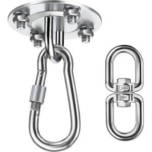 WIDE RANGE OF USE: For indoor and outdoor use, applicable to concrete ceilings and wooden beams, the best anchoring solution for all suspension straps and resistance trainers, Hammock Swing kit, Olympic rings, battle ropes, yoga swings and boxing equipment. CORROSION RESISTANCE, HIGH HARDNESS: 304 stainless steel rings made of high quality raw materials. No rust, corrosion resistance, high hardness, non-toxic and pollution-free environment. Suitable for any scene. EASY TO INSTALL: We have pre-drilled two holes for bolting to wooden or concrete beams. Includes 2 concrete anchors and 2 hex lag screws, and a unique one-piece design and can be installed in minutes. 360° ROTATION DESIGN: The innovative design makes the use more flexible and can be used more widely. Such as playgrounds, swing sets, porch swings or hammock swings. WHAT YOU GET: Swing hanger with 2 concrete anchors and 2 hex lag screws, our 30-day MONEY-BACK guarantee for any reason and friendly customer service. High-quality