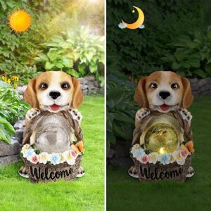 Here is a resin garden statue figurine of a dog with a cracked crystal glass ball for decoration. Made from durable resin and non-toxic paint materials, safe for you and your kids exploring the fairy world. Just come and decorate your garden and home! More Features: The garden decoration can bring a dreamy and fairy atmosphere to your garden or home, giving you an experience of different decoration. Designed with the shape of a crouching dog and keeping a flower basket with a crystal ball in front of it, vivid and cute. Made from exquisite resin and non-toxic paint materials, safe for indoors or outdoors. Perfect fairy gift that can stimulate your children's imagination and creativity. Product details: Type of figure: Dog Material: Resin Power supply: solar collector < li>Weight: 660 g / 1.45 lb Product size: 12 x 14.5 x 20 / 4.72 x 5.7 x 7.87 inch