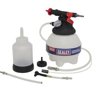 Sealey Pneumatic Brake Bleeder 3L Features: One-person professional pneumatic brake bleeding tool. Pressure range makes unit suitable for use with ABS systems. Reservoir holds 3L - plenty to flush a whole system without the risk of running dry. Two drainage method options allow you to drain brake fluid via the brake caliper with the bottle option for replenishing, or brake reservoir pressurising for full brake bleed. Technical Details: • One-person professional pneumatic brake bleeding tool. • Pressure range makes unit suitable for use with ABS systems. • Reservoir holds 3L - plenty to flush a whole system without the risk of running dry. • Two drainage method options allow you to drain brake fluid via the brake caliper with the bottle option for replenishing, or brake reservoir pressurising for full brake bleed. • Model No. VS0215 • Model No. VS0215 Additional Information: • One-person professional pneumatic brake bleeding tool. • Pressure range makes unit suitable for use with ABS