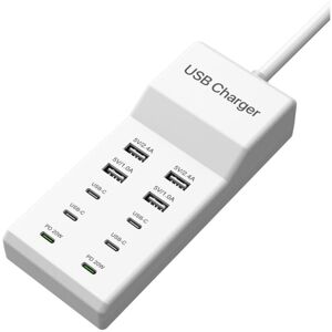 [10 Ports USB Charger] This 100W Charger With 6 USB-C ports(4 x 5V/3.0A+ 2 x PD 20W) and 4 USB-A ports (2 x 5V/2.4A+ 2 x 5V/1.0A), you're ready to charge ten of your devices simultaneously. Automatically detect all connected devices, adjust the output accordingly, a constant voltage to minimize charging time. [Wide Compatibility] Multi-port USB Charger is compatible with various smartphones, tablet ,watch, Headphones, cameras, e-, USB fans, power , bluetooth headsets, MP3/MP4 players, drones, etc. [Multiple security protection & chip upgrade version] This 10-port USB charger adopts the latest upgraded version, adding a security chip, each USB port has its own current output port, which is not related to each other, improving the charging safety factor Using flame retardant PC+ABS shell, with overheat, overcharge, overcurrent, overload, short circuit protection functions, can automatically protect the device and greatly extend the battery life of the device. [ Design] The USB hub