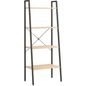 Create an extra storage area in a limited space with this 4-tier standing shelf! Strong steel construction: The storage shelf has a strong steel frame, which ensures sturdiness and stability. Ample storage space: The bookcase takes little space while offering ample space to store your books, plants, picture frames and any additional stuff. Wide application: The practical shelf is perfectly suitable for your home and office, including your living room, bathroom, bedroom, balcony, etc. WARNING: To prevent overturning, this product must be used with the wall attachment device provided. Note: Each product comes with an assembly manual in the box for easy assembly. Colour: Light brown and black Material: Engineered wood, steel Dimensions: 56 x 35 x 140 cm (W x D x H) Max. load capacity (total): 50 kg Max. load capacity per shelf: 15 kg Legal Documents: More details about preventing your furniture from tipping over can be found here SKU: 336364 EU responsible party Haba Trading B.V. Mary