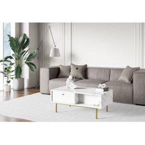 The coffee table from our collection is the perfect solution for those who appreciate the combination of industrial style and modern design, which adds a unique character to an interior. Its elegant finish adds charm, natural warmth and harmonises with various arrangements. The coffee table is equipped with storage compartments that will provide space for storing small items such as remotes, books or everyday accessories. Thanks to this, everything will be organised and easily accessible. Being made of high quality 16 mm thick laminated board guarantees its durability and resistance to everyday use. ABS edging provides effective protection against mechanical damage, protecting the table's edges and ensuring its long-term durability. Fairmont Park Colour: Royal Marble Black