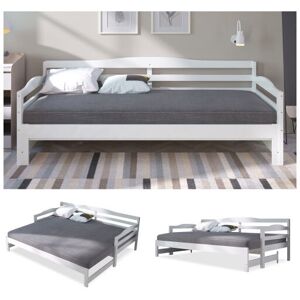 ubtly designed with a keen eye for the contemporary: Finished in a serene and classic white, The simple yet contemporary bed is a modern classic, featuring a streamlined wooden-crafted frame complimented, which is a perfect addition to your room. Crafted For Durability: Solid New Zealand pine wood bed frame. Durable, non-toxic, low VOC finish. Functions brilliantly for one or two sleepers: With this daybed, you quickly and easily create space for overnight guests. Just pull out the bed base and you get a bed in no time. Impressive Storage Options: The storage drawer included in this bed offers a large amount of space for items such as blankets, bedding, and more. To reach your belongings, the included drawer comes on castors that can be rolled from underneath the frame in no time at all. Extendable Bed Frame: We've designed our extendable beds to keep up with each and every growth spurt-so your wallet won't have to. All of our extendable beds are tested to meet the strictest safety