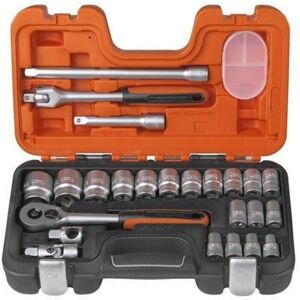 The Bahco S240 1/2in Drive Socket Set contains sockets made from high performance alloy steel. With a Dynamic Drive profile to protect the sockets from wear and damage. Supplied in an oil and temperature resistant polypropylene case. Confroms to DIN 3120 / ISO 1174. Contains: 18 x 1/2in Hex Sockets: 10, 11, 12, 13, 14, 15, 16, 17, 18, 19, 20, 21, 22, 23, 24, 27, 30 & 32mm2 x 1/2in Extension Bars: 125mm (5in) and 250mm (10in)1 x 1/2in Universal Joint1 x 1/2in T-Adaptor1 x 1/2in Flexible Handle 250mm (10in)1 x 1/2in Ratchet Handle 54-Teeth Bahco S240 Socket Set Of 24 Metric 1/2In Drive in Orange