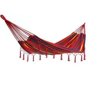 Take a break from everyday life! With the large outdoor hammock from DETEX® , you can relax in comfort and escape from everyday life. The cosy XXL cotton-polyester fabric nestles gently around you and ensures a comfortable feeling when you swing. The fabric is skin-friendly, weatherproof, water-repellent, tear-resistant and durable . The perfect conditions for a travel hammock. Relax as a couple! The 150 cm wide double hammock offers enough space for two people to relax in. The robust camping hammock can hold up to 300 kg and offers a high level of comfort even for two people. Eye-catching! As a special feature, the outdoor hammock is designed in the trendy boho style and has a beautiful oriental flair thanks to the macramé on the sides. It creates a feeling of holiday and relaxation. Perfect for the garden, terrace, living area, children's room or conservatory. Always with you! You can easily and conveniently take your camping hammock with you on your travels thanks to the bag