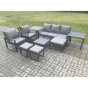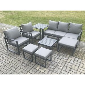 This deluxe aluminum gas fire pit sofa dining set is a great addition to your patio or garden, made of high quality Alloy aluminum and durable powder coating for sturdiness and structural durability. Important notice: Please Do not cover the igniter with lava .we strongly recommend using 5 kg gas tank. Before using the fire pit ,please check it carefully if there is any leakage at the joint place or the hose . if the gas bottle is not fixed correctly or the hose has some leakage it may cause danger . Set Dimensions: 2 x 3 Seater Sofa: 166W x 73D x 78H cm 2 x Side coffee table 68L x 68W x 59H cm; 1 x Big footstool 60L x 60W x 35H cm; 2 x Fully Assembled Stool Size: 40L x 40W x 36H cm; 1 x PC dining table with fire pit: 140L x 80W x 70H cm (Aluminum table top Without glass) Dark grey powder coated with dark grey fabric .Color may vary little due to light or monitor .we are unable to return the item due to color problem .please contact before purchase if you have requirement on color saturation. the product is delivered on pallet, to kerbside only. Cheap Price Compared With Other On Or Offline Store For Fire Pit Set Items Comes Flat Packed And Easy Assemble, Alloy aluminum Frame With Powder Coating To Prevent The Rust This Set Was Completely Made By Handmade, Aluminum table top Without glass9 CM Thick Seat Cushion With Soft Pillow Back Cushion Gives You More Comfort Low Maintence ,Removable Cushion Cover And Easy Move To Different Place. Pls Keep the Cushion Indoor Or With Rain Cover When Not In Use . Keep The Furniture With Rain Cover If Not Use For Long Time . Factory Directly Sold To Guarantee The Quality And After Sale Service Important notice: pls check the product carefully before sign it .if any obviously damaged ,pls kindly marked in the receiption .we will claim to the courier and send the replacement .thank you WARRANTY&SUPPORT:Though we have nearly 100% checking before shipment but as this item is 100% by handmade so If you have any issues of assembly, missing parts, damaged or other problems of product quality of this outdoor garden furniture set, please feel free to contact us, and our after-sales team will respond within 24 hours and offer you the most perfect and powerful solutions Fimous Aluminium Outdoor Lounge Sofa Garden Furniture Sets Gas Fire Pit Dining Table Set with 3 Footstools 2 Side Tables Dark Grey