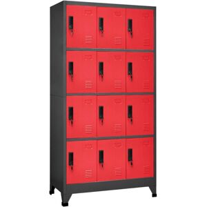 This locker cabinet has a modern design, which will make a great decorative addition to any room or office space. This storage cabinet is made of steel, making it durable as well as easy to clean. Each compartment is euippped with a lockable door with air vents. The cabinet has ample storage space for keeping clothes and other personal belongings safe. Additionally, the name tag holder allows you to neatly sort your items. This locker is suitable for schools and offices to store various things. Colour: Anthracite Material: Steel Dimensions: 90 x 45 x 180 cm (W x D x H) 12 lockable doors (2 keys included for each door) With air vents and name tag holders on doors Loading capacity per compartment: 15 kg Total loading capacity: 180 kg Assembly required: Yes Warning: To prevent overturning, this product must be used with the wall attachment device provided Legal Documents: More details about preventing your furniture from tipping over can be found here