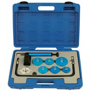 For refilling radiators with coolant without introducing air pockets. Complete with adaptors for most modern cars and instructions for use. Adaptor sizes: 35mm, 39mm & 44mm diameter. Adaptors expand by approximately 4mm. Requires workshop air supply.