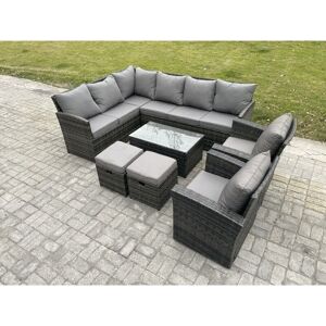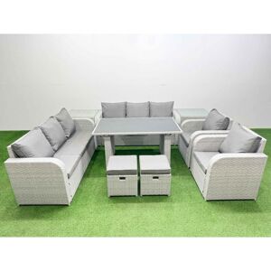 Set Dimensions: 2 x 3 Seater sofa with double armrest: 177W x 65D x 66H cm; 2 x Chair: 74W x 65D x 66H cm; 1 x Dining table size: 110L x 70W x 70H cm; 1 x Coffee table: 65L x 65W x 34H cm; 2 Small footstools 40L x 40W x 34H cm;Fully Assembled) Dark grey mixed rattan with dark grey fabric .Color may vary due to light or monitor .we are unable to return the item due to this problem .Please consult us before purchase if you have requirements on color saturation, the product is delivered on pallet, to kerbside only. Fimous 10 Seater Wicker PE Rattan Outdoor Furniture Lounge Sofa Garden Dining Set with Dining Table Side Table in Dark Grey
