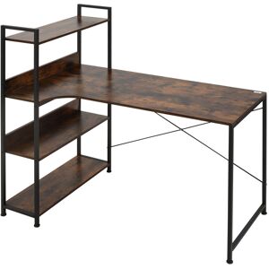 Bring life back into your work space with this writing desk with storage. A minimalistic design, it fuses together a slimline structure with wood-grain effect shelves so you can dress it up or leave it standing bare as you wish. The metal frame means it stands tall and steady, with a cross bar on the back for extra strength. The computer desk is finished with four shelves on the side, giving you plenty of room for books, folders and stationery etc.A solid composition which keeps in shape and stable, allowing you to focus on your work. Besides, six foot pads are adjustable to help it keep stable on uneven floor. Desk: 75H x 118L x 66Wcm. Shelf: 34.5/33.5/32.7H x 66L x 24Wcm. Bottom shelf to floor: 5.7Hcm. Borough Wharf Colour: Brown/Black