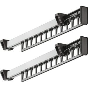 With this clothes rack, you can create valuable storage space in your hallway, bedroom or guest room. Jackets, shirts, blouses, dresses and more can be hung quickly and neatly on the 2 extendable coat rails with the help of hangers. The folding rack can be set up in 3 positions depending on the space available. With its simple, modern metal design, the freestanding coat rack fits beautifully into any room. When not in use, the clothes rack can be folded up quickly. Clothes Rack in Detail - Maximum dimensions H x W x D: approx. 139 x 135 x 95 cm - Clothes rails (not extended) W x D: approx. 82.5 x 2 cm - Clothes rails on each side max. extendable up to approx. 31.5 cm - Max. load per rod: approx. 10 kg - Weight: approx. 2.5 kg - Material: Iron, plastic - Colour: Silver Folding Coat Rack - Completely folded H x W x D: approx. 161 x 82.5 x 11 cm - Position 1 H x D: approx. 139 x 95 cm - Position 2 H x D: approx. 146 x 80.5 cm - Position 3 H x D: approx. 151 x 66 cm Extendable Metal