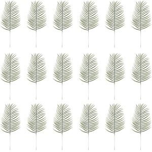 Artificial Palm Leaves 20 inch, Palm Leaf part lenght: 14 inch, Leave widest part: 9.6 inch. These artificial palm leaves are made of high-quality plastic. Natural in color, washable, not easy to fade, and reusable. Natural leaf design that looks the same as a real tropical palm tree leaf. Decoration for beach parties, jungle parties, zoos, Hawaiian Luau-themed parties, birthday parties and wedding ceremonies. size:Expand 51x24cm Material:plastic colour:green Package Contents: 18 * Home Decoration Only the above package content, other products are not included. Note: Light and different displays may cause the color of the item in the picture a little different from the real thing. The measurement allowed error is +/- 1-3cm.