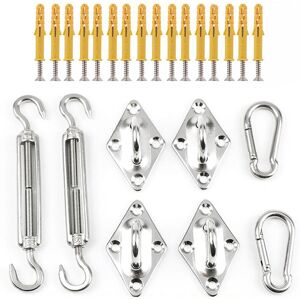 The Morzejar shade sail hardware kit is ideal for installing all triangle/rectangle/square shade sails and any other location you need. Carabiner - Opens and closes smoothly as the spring-loaded gate makes it easy to attach important items, for backpack, keychain, chains, ropes, camping, hiking, fishing, pet, indoor outdoor equipment, DIY accessories 4pcs Pad Eye Plate - High Strength 304 Stainless Steel Rhombic Pad Eye Plate Hook Clip Ring, Shade Sail Accessories, Mount Your Sun Sail stable and secure way, This accessory set can be fixed on a wooden/cement wall Adjustable Turnbuckle - The shade sail kit has an adjustable turnbuckle to tighten the sail during installation Plastic Expansion - Our sunshade hardware kit has configured an additional plastic expansion to fit the screws. Screws work more firmly than directly attached to the wall Package Included: 4 x Wall Bracket with 8mm Support 2 x M6 Turnbuckles 2 x Spring Hook 16 x Screws 16 x Plastic Expansion Morzejar Shade Sail