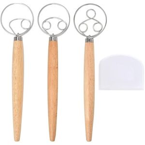 [Upgraded Large 3-Eye Hook] - Comes with a pack of 3 Danish dough whisks and the first dough whisk was a 1-eye hook designed, the second whisk was a 2-eye hook designed and the third whisk is a large 3-eye hook designed. You can mix your dough using the one you like. [High Quality] - Danish dough mixer is made of professional grade stainless steel. It is not easy to rust and has strong hardness. It will not bend when mixing thick dough. All materials are safe materials and are absolutely safe. [Easy to Clean & Mix Quickly and Evenly] - This Danish dough bread mixer tool really helps to incorporate the dry and wet ingredients together much better than using ordinary wooden spoon handle whisks. You will be happy to get it. [Healthier] - With dough hook, you no longer need to knead the dough by hand, is cleaner and hygienic, keeping your hands clean [Multiple Applications] - This Danish dough whisk set is a nice bread mixing tool. Not only for bread, but also for brownies, brownies,