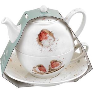 This 'Tea for One' Wrendale fine bone china teapot, cup and saucer has a 300ml capacity and features chirpy robins. By making tea, the pot sits inside the cup and warms up the tea cup ready for pouring. This beautiful fine bone tea set is made by Royal Worcester and features the gorgeous Wrendale designs. Suitable for use in the microwave and can be washed in the dishwasher.