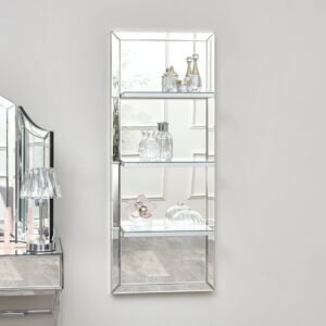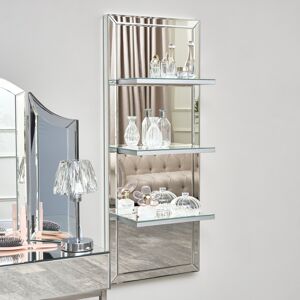 This Mirrored Wall Mounted Shelving Unit is a stylish art deco inspired storage choice perfect for fans of luxurious furniture and glamorous shelving Made of wood and bevelled glass this shelving unit has a rectangle design and comes with three storage display shelves perfect for storing your toiletries decor or make up. These can be wall mounted via hooks on the back. Ideal for use in a bedroom bathroom hallway or living room space. Due to their simple yet intricate design this wall unit is best suited to contemporary vintage or art deco style spaces. A stunning wall unit perfect for fans of mirrored furniture and glamorous interiors. Part of a large collection of mirrored furniture available in a wide variety of styles sizes and designs. Want to see more items like this? Browse our Shelving & Storage category for more options. Colour: Mirrored Material(s): Wood Glass 100cm x 40cm x 20cm (height x width x depth) Fully assembled