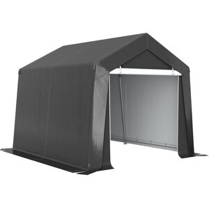 Offering a large amount of space, the Outsunny storage shed tent is a portable shelter you can use to protect your motorcycle, garden tools, or other items outside. It has a thick PE tarp that can create a seal with the ground by burying its edges. A ventilation window allows for optimal airflow throughout the year. Built with strong galvanised steel that mounts to the ground with stakes, our portable plastic shed is built to provide outdoor protection at a moment's notice.Features:Roof and side walls made of thick PE stop UV rays and light rain without issueA large door seals your tools insideA ventilation window allows for optimal airflowWater and warp-resistant galvanised steel frameExtended edges and stakes mount it to the groundAssembly required