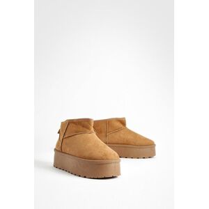 Cosy platform boots with a chunky sole Ankle-high design for versatile styling Soft synthetic suede upper for comfort Flat heel height between 0 and 2cm Slip-on style for easy wear Step into comfort and style with these trendy platform boots from Boohoo. Perfect for the fashion-forward woman who values both aesthetics and practicality, these boots offer a contemporary twist on a classic silhouette. The chunky platform sole not only adds a bold element to your look but also provides extra height without compromising on comfort. Pair them with cropped trousers and an oversized jumper for a chic casual ensemble, or style them with a midi skirt and leather jacket for an edgier vibe. Ideal for various casual occasions, from coffee dates to shopping trips, these versatile boots will quickly become a staple in your wardrobe. Their cosy design makes them particularly suitable for cooler days, ensuring your feet stay warm and stylish throughout the season.