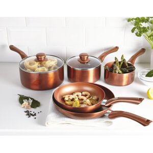 Our 5 piece of ceramic copper cookware set with two glass lids is the king of copper cookware. Manufactured in high-quality 2.5mm aluminum with an induction base and non-stick ceramic coated interior, these are all the pans you will ever need. The pans feature a non-stick ceramic coating that uses a revolutionary repelling action that allows for butter, oil, and chemical-free cooking. Glass lids with steam vents are supplied for the 16cm and 20cm saucepans. Our cookware is oven safe to 160ºC and dishwasher safe and suitable for all types of hobs. These ceramic-coated pans are PTFE and PFOA-free. Symple Stuff
