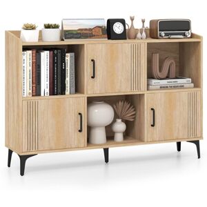 Wide cabinet top enlarge display space for various items 3 open compartments offer large & sorted storage space 3 single door cabinets suit different storage needs 5 raised metal support legs ensure reliable structure 12cm clearance leaves enough sweeping space for a sweeper 2 anti-topping kits fix the cabinet to the wall to prevent wobbling Non-slip foot pads protect the floor from getting damaged Chic appearance adds a touch of subtle beauty to your home Versatile storage cabinet for living room, study, or dining room, etc Edge protection design prevents daily items from falling Magnetic catch keeps the cabinet doors firmly closed