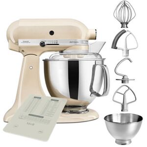 FREE Mary Berry At Home Digital Scale worth £24.95 This mighty KitchenAid Artisan Almond Cream 6.6L Bowl Lift Food Mixer offers the perfect union of power, capacity and control. Combining KitchenAid's iconic Artisan mixer styling with the sturdiness of a bowl lift configuration, this mixer is ready to take on the toughest of challenges, and boasts a full metal construction and die-cast metal control knobs. Taller and bigger than tilt-head mixers, the bowl attaches securely into place at three lock points, making it extremely sturdy - ideal when working with heavy mixtures. A lever lowers and raises the bowl into position and the ergonomic bowl handle makes it easy to position and lift off. With all metal gearing, the improved motor offers more performance to handle a large number of preparations. With 11 distinct speeds, you have complete control over power. The 1/2 speed setting lets you gently fold in delicate ingredients or keep air in batters without overbeating, just as if you