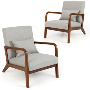 Are you looking for a comfy accent chair? Our leisure chair will be a perfect choice. This chair features a wide backrest with 102° tilt angle, two side armrests and a soft padded cushion for you to rest. Covered with premium faux linen fabric, the seat cushion is padded with soft sponge, ensuring upgraded comfort. Besides, extra lumbar pillow with smooth zipper provides your waist additional support and comfort. Meanwhile, natural rubber wood frame possesses a load capacity of 150kg and long-lasting service life. Rubber wood legs with non-slip foot pads also make it stable and not easy to wobble. Features: Wide backrest with 102° tilt angle supports your back and shoulder 2 rubber wood armrests release your arm’s pressure Soft sponge padded cushion with built-in supports your hip Premium faux linen fabric and rubber wood material for high durability Extra lumbar pillow with smooth zipper for more comfort Anti-slip foot pads ensure additional sturdiness and floor protection Great for