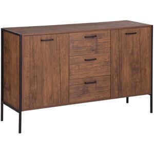 Multifunctional Living Room Highboard Cabinet. This sideboard is a classic and universal piece of furniture for your living room. Plenty of storage space is provided by three capacious drawers and two cabinets. The elegant dark colour and the natural wood effect finish go very well with the metal legs and frame in black, creating a unique item with an industrial touch. Details: Product Type: Sideboard Style: Industrial General Color: Brown, Black Material Type: Wood Main Material: MDF Additional Material: Steel Legs material: Metal Top Material: Engineered Wood Doors Opening: Standard Drawers: Yes Finish: Powder Coated Leg Caps/ Pads: Yes Number of Doors: 2 Number of Drawers: 3 Shelves: No Dimensions: Depth: 39 cm Width: 123 cm Height: 78 cm Weight: 35 kg Drawer Weight Capacity: 5 kg Shelf Weight Capacity: 25 kg Top Weight Capacity: 50 kg Offer Includes: 1 x Sideboard Key Features: Functional and Capacious Drawers, Well-Suited for Variety of Home Decor, Wood-like Finish for Natural