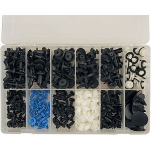 A mixed set of 12 types of trim clips including button and moulding clips, fir tree fixings, drive, push and screw rivets - original manufacturer replacement trim clips - to suit Land Rover vehicles. Contains popular Trim fixings for Land Rover and Range Rover vehicles. Supplied in a sturdy presentation box. 1:1 images for easy identification of parts. Full range of replacement packs available. Box contains 280pc.