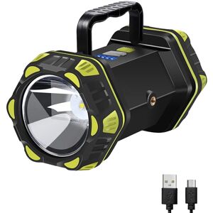 2+2+4 LIGHTING MODES - This lantern flashlight is composed of a main light, a side light and a tail light. The main light has 2 lighting modes (high, low), its irradiation distance can reach 2600 feet. The side spotlights 2 modes (high, low), which can be used as a camping light. The tail light has 4 modes (high, low, red, red strobe), suitable as an emergency light. HIGH BRIGHTNESS - The main light of the rechargeable LED flashlight uses L2 beads, which can provide 1500LM brightness. And the tail light has 10 LEDs (red light) and 20 LEDs (white light). The spotlight can illuminate a large . You don't have to worry about being in a dark environment. RECHARGEABLE AND PORTABLE CHARGER: The portable LED camping light is equipped with 4800 rechargeable batteries. It can provide longer usage time. Therefore, the spotlight works as a portable charger. You can charge USB-powered devices in an emergency and enjoy outdoor activities without worry. WATERPROOF AND : The rechargeable camping