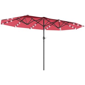 It's time for your garden to shine with this double-sided parasol from Outsunny. A stylish design, it features 36 lights on the frame ribs to light up your outdoor seating when dark. They are solar powered so no electricity is required. The large polyester canopy creates plenty of shade, protecting you from direct sunlight and heat. Using a crank mechanism for effortless opening and closing, the large canopy can provide more sunshade. If you've been searching for a new way to change your garden, then this is the answer. Matching base: Outsunny sku 84D-089. OUTSUNNY 4.4m Double-Sided Sun Umbrella Patio Parasol with LED Solar Lights for Garden in Red