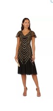 There is sparkle and then there is this luxe gown, the ultimate in shimmer and shine. This dramatic full-length design is hand embellished with allover sequins and beading that catches the light with every movement. The slim column silhouette is finished with a crew neck, a scoop back, and short sleeves, as well as a back zipper closure. Opulent and impossibly elegant, this dress is made for grand entrances and nights on the dance floor. Adrianna Papell Women's Beaded Mesh Long Dress in Silver Size: 16