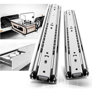 【Maximum load capacity 150 lbs, service life 30 years】The three sections of the guide rails are made of 1.5mm thick Q235 steel plate, high-strength, high-density and high-quality cold-rolled steel. It can bear heavy load storage without deformation. The bottom is equipped with a limited rubber pad and is made of ABS plastic, which has good wear resistance and impact resistance. After testing, the opening and closing times have reached more than 150,000 times. 【Removable ball bearing drawer slides】Two sets of ball bearings are designed inside the slides, all made of solid steel balls. In addition to maintaining the smoothness of the slide rail, it can also effectively increase the load capacity of the slide rail. There is a hidden detachable button on the back, which can be pushed to remove the slide rail, making it easier to install and clean the drawer. 【Full Extension Slides, Double Anti-Rust】The full extension heavy-duty drawer slides support full-space entry and exit, and the