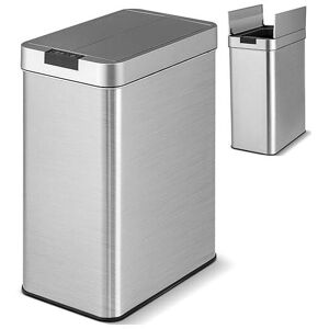 Make it easier to throw waste with our 50 L automatic trash can! Made of quality stainless steel that is anti-oil and anti-fingerprint, this kitchen garbage bin is ideal for daily use. The anti-scratch and waterproof surface can be easily wiped with a soft rag. Besides, 2 opening methods are available. One is infrared sensing and the other is button control. In sensing mode, you can throw litter without touch since the lid can open and close automatically. The activated carbon cotton boxes help absorb odors and the lid lock odors to keep away from peculiar smells. Furthermore, the stainless steel waste bin is a perfect addition to your house, whether in the living room, kitchen, bathroom or more. With a 50 L large capacity, you do not need to change garbage bags frequently. There are 4 steps to putting on a garbage bag: ① Take out the ring. ② Put on the trash bag. ③ Put in the trash can. ④ Close the lid. Features: 3-layer material for better oil, finger and water resistance Infrared