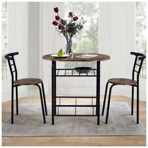 [3 Pieces Pub Table Set] Bar table and chairs set sold in a complete sets which included 1 bar table and 2 stools.One extra storage layer under the desktop can be used to store magazines, newspapers, wine, snacks etc. Simple and modern design, perfectly blend in with any type of home decor. [Space Saving] This high table set with compact design is a perfect working partner for small spaces. Spacious enough for two people to share a meal.The two original matching chairs can be neatly moved into the bottom of the table when not in use. It's an excellent solution for studio apartment, tiny condo, small kitchen&dining room or entryway. [Versatile Use] This small 3 piece kitchen bar table set spaces design creates casual seating for a bar area or a simple dining solution for two. It can be used as a small pub dining table, breakfast bar, coffee bar,behind couch table, homework table, standing table, restaurant counter etc. [Durable Bistro Table Set] Made of MDF board and quality steel, not