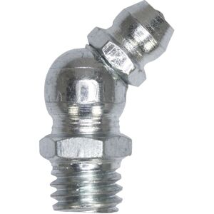 This grease nipple 45 is a high-quality part made to lubricate things well. Mild steel is used to make these imperial grease nipples, so they are strong and reliable. The 1/8" grease nipple can be used with BSP fittings that are also 1/8" in size. With its 45 angle, the 45-degree grease tip makes it easy to apply lubricant precisely in tight places.Technical InformationPackage includes: 25 piecesSize variations: 1/8 BSP, 1/4 UNF, M6 x , M8 x 1, M8 x 1.25, M10 x 1SKU SizePack SizeGTSE-AGN21/8 BSP 25GTSE-AGN51/4 UNF25GTSE-AGN8M6 x 125GTSE-AGN11M8 x 125GTSE-AGN14M8 x 1.2525GTSE-AGN17M10 x 125